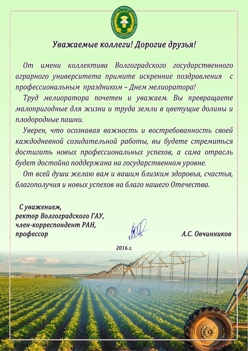 Поздравление с днем мелиоратора официальное поздравление