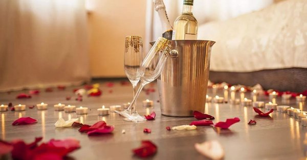 Ванна с лепестками роз и шампанским