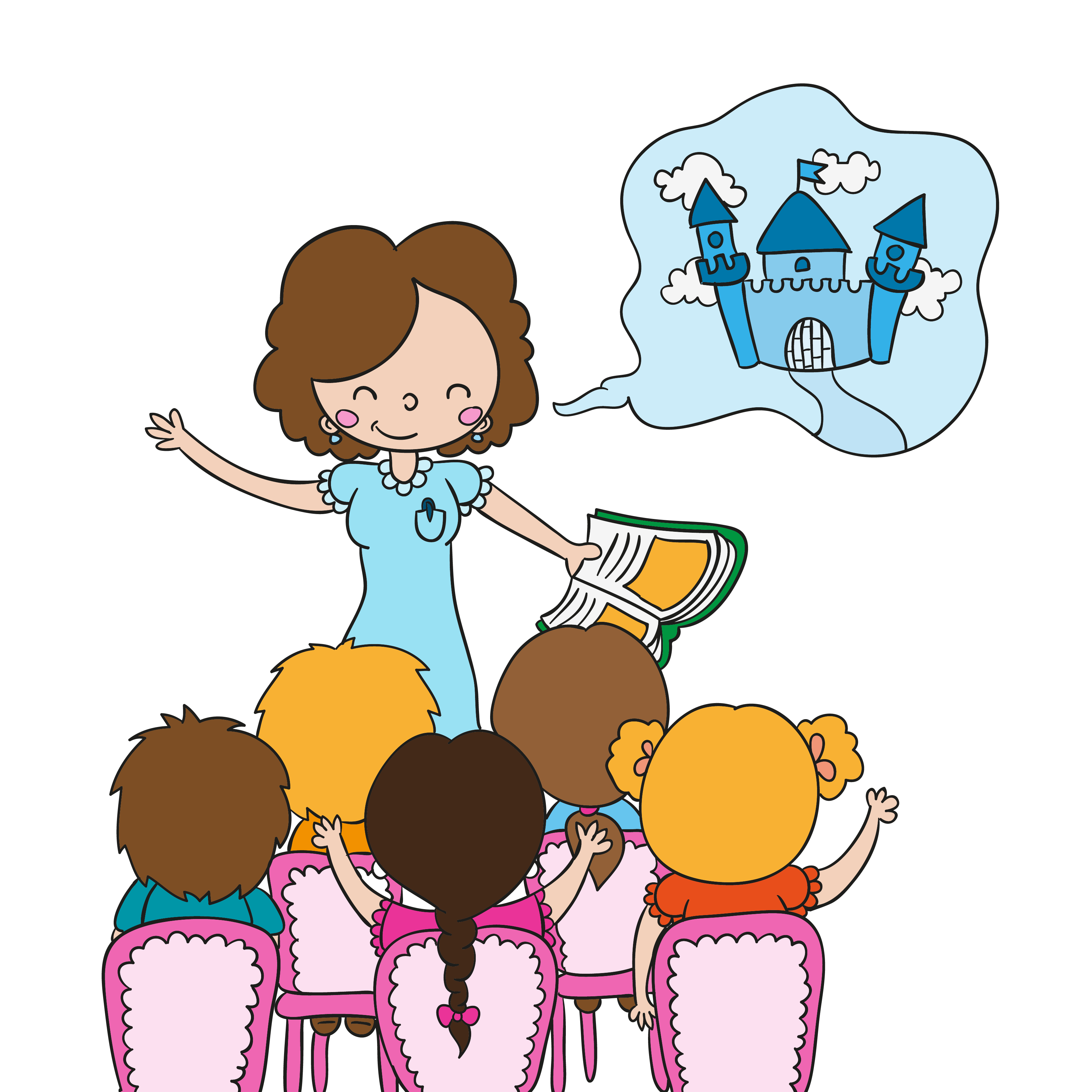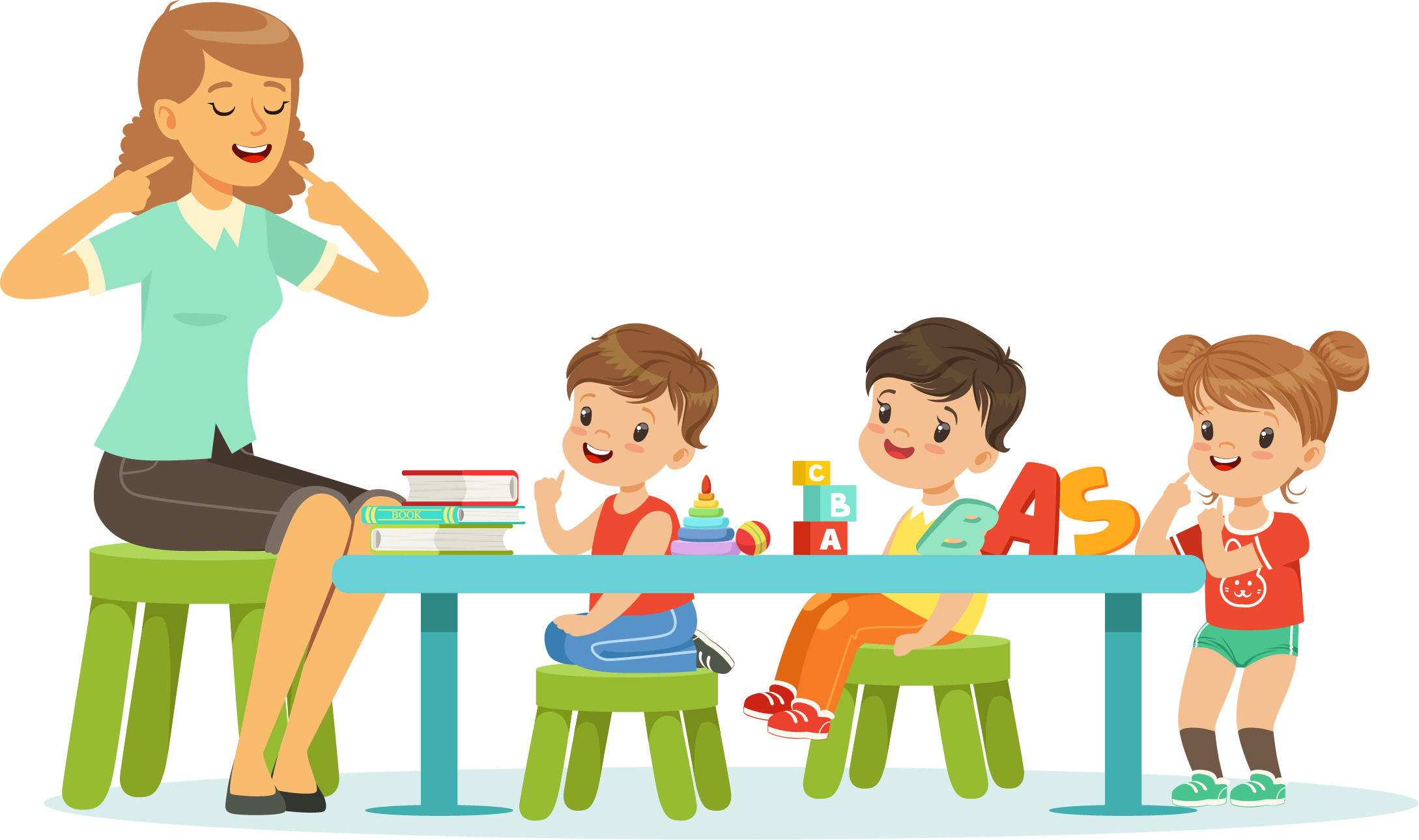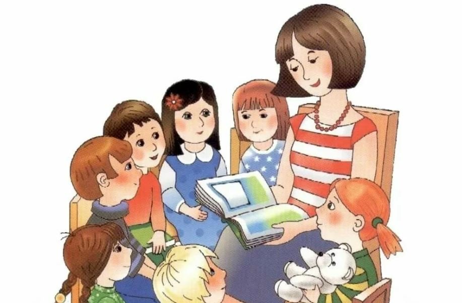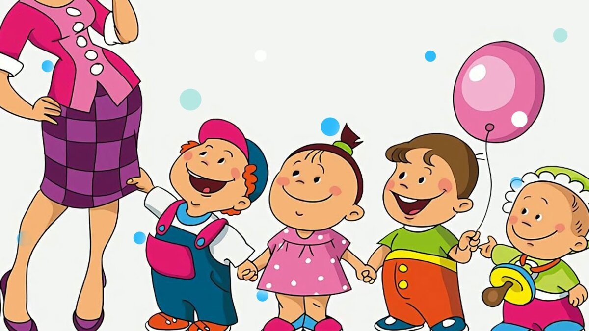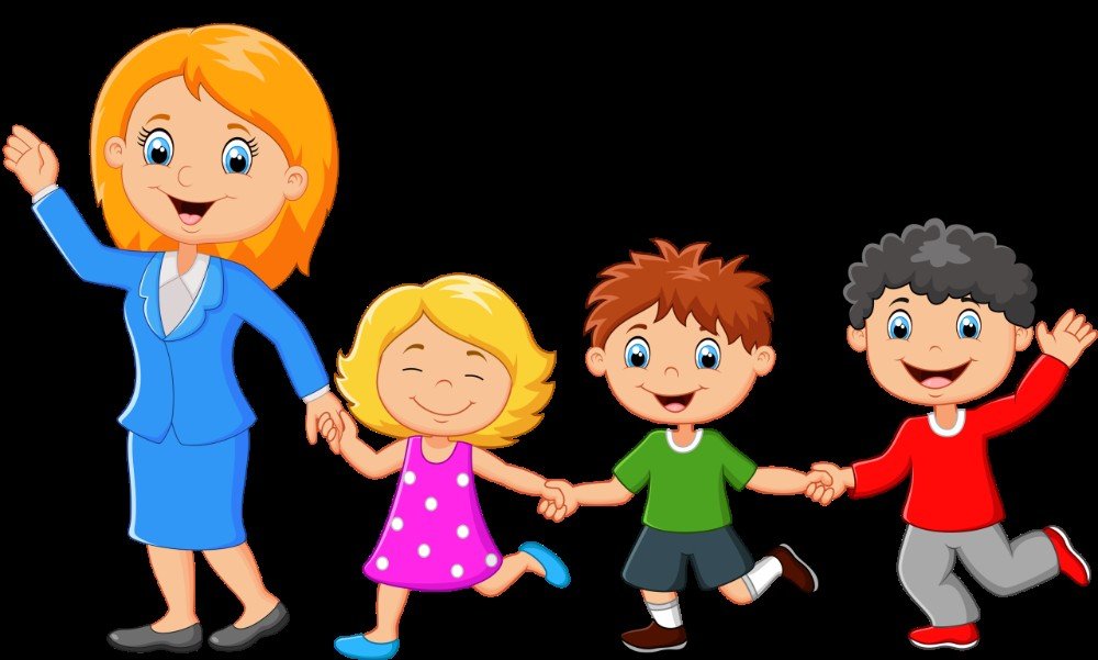 ![Воспитатель и дети мультяшные]()