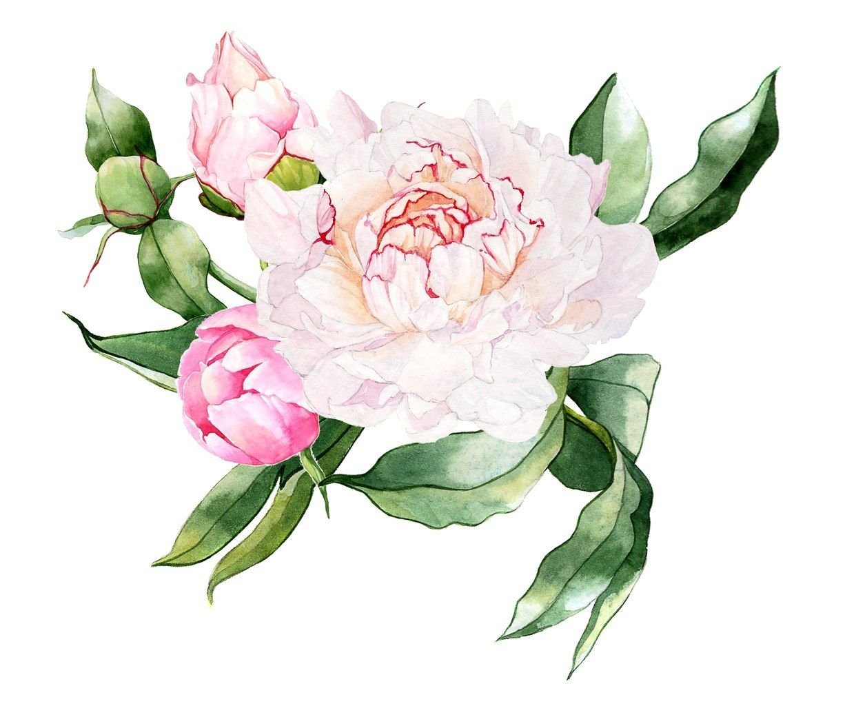 ![Акварельные цветы пионы]()