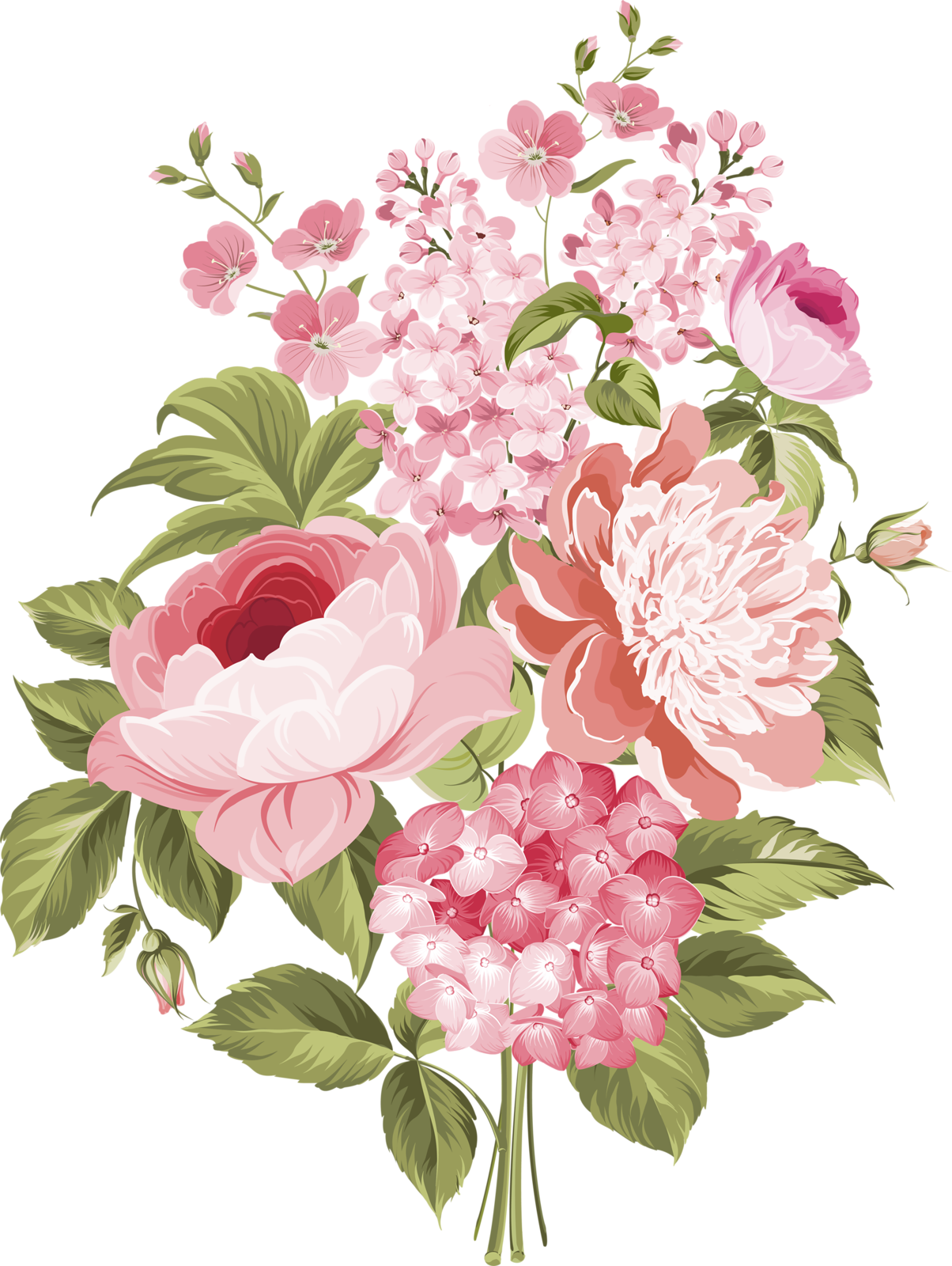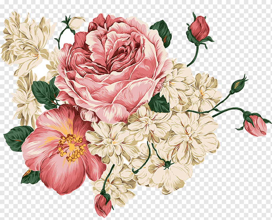 ![Винтажные цветы на прозрачном фоне]()
