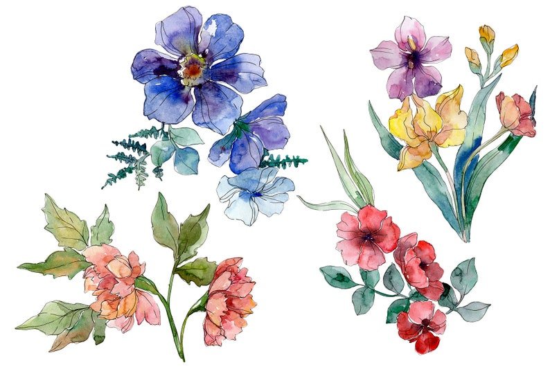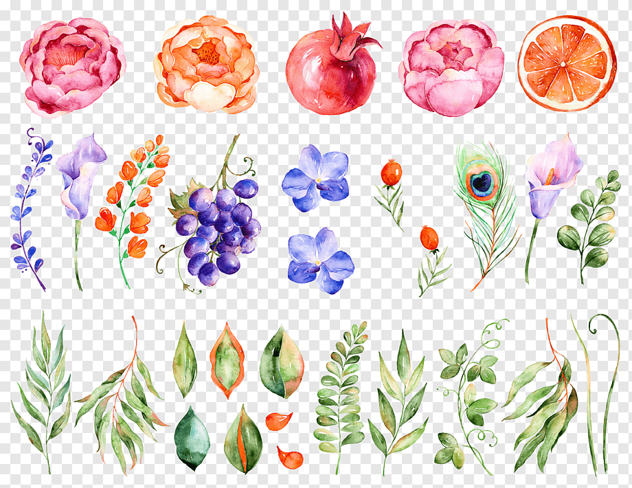 ![Акварельные цветы на прозрачном фоне]()