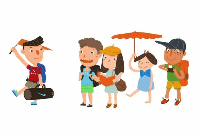 ![Туристы мультяшные]()