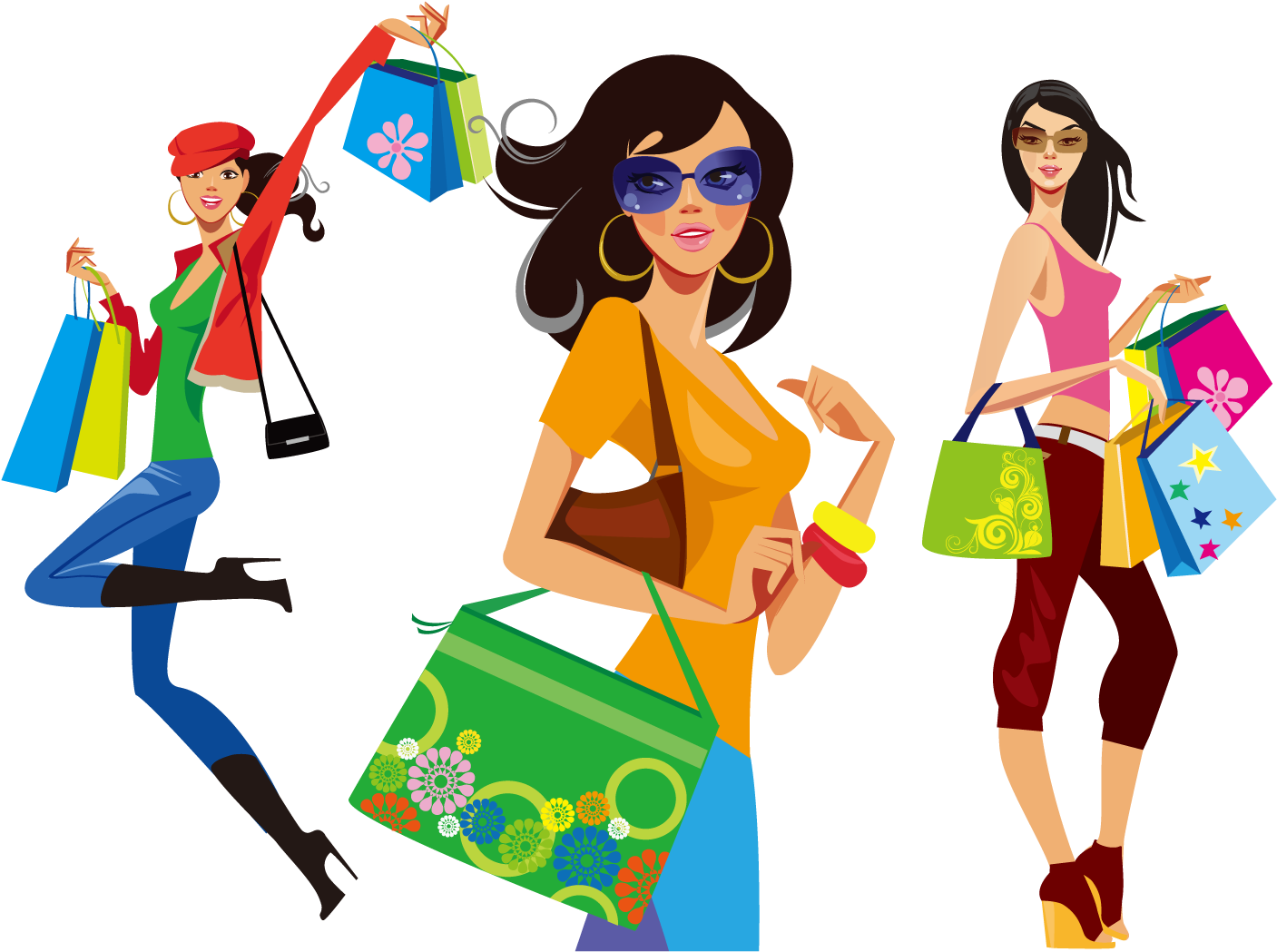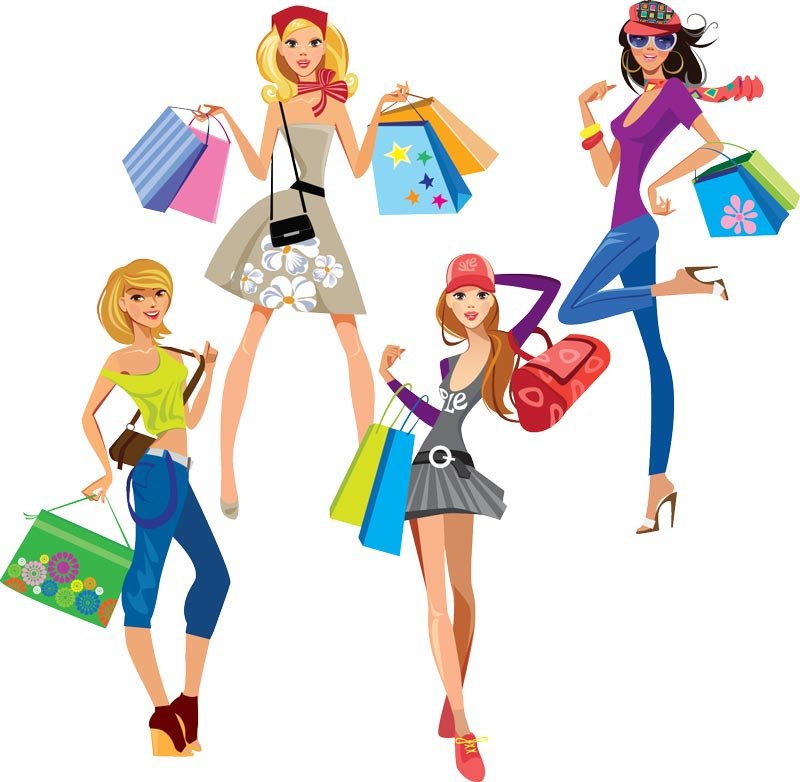 ![Девушка шоппинг вектор]()