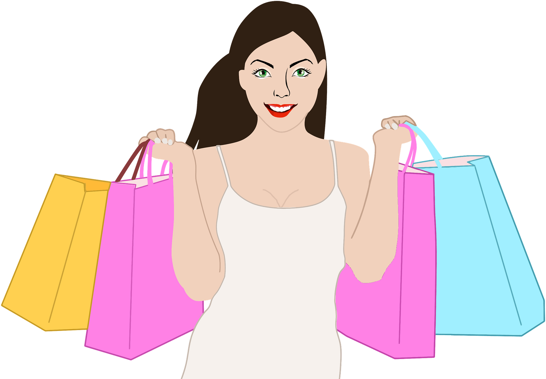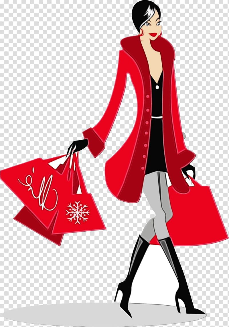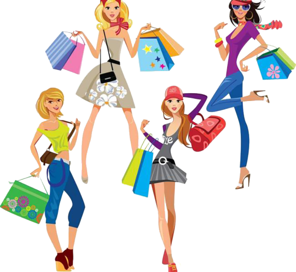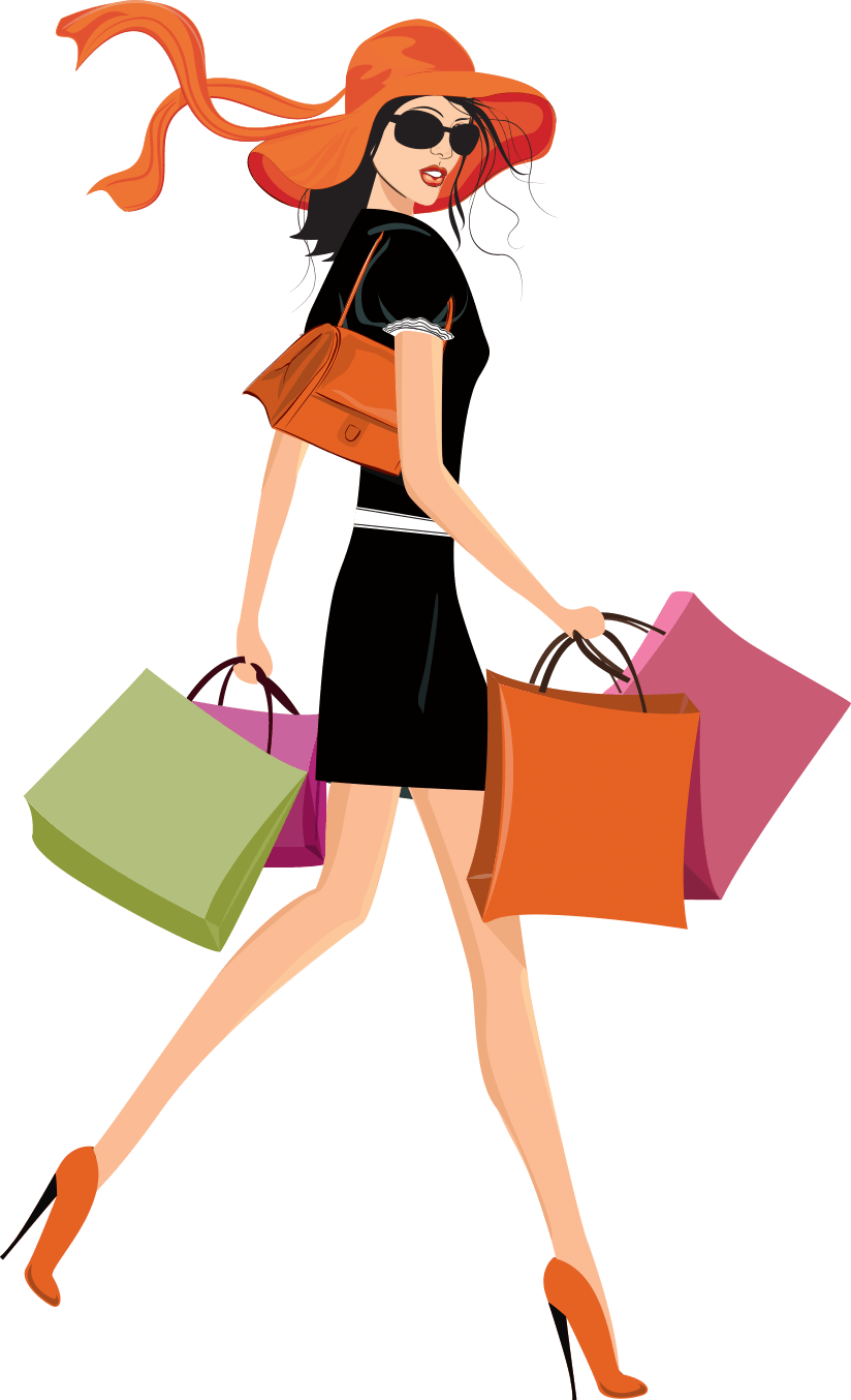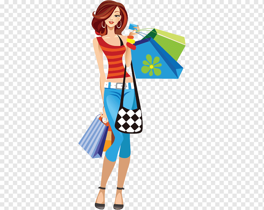 ![Рисованная девушка с покупками]()