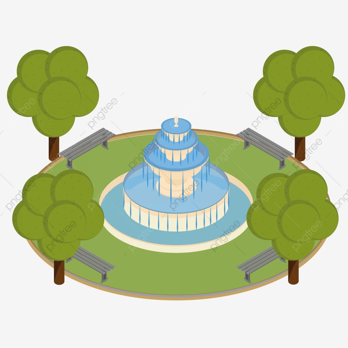 ![Сквер с фонтаном на прозрачном фоне]()