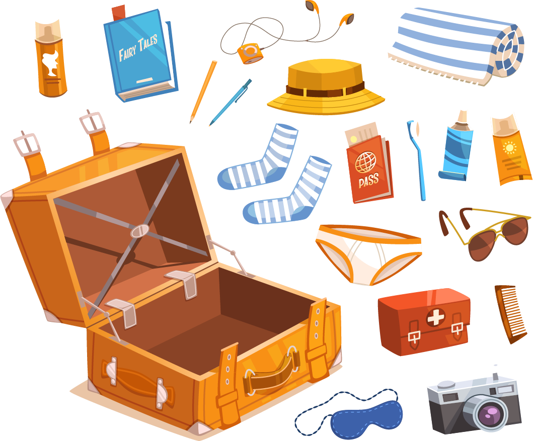 ![Вещи для путешествия мультяшные]()
