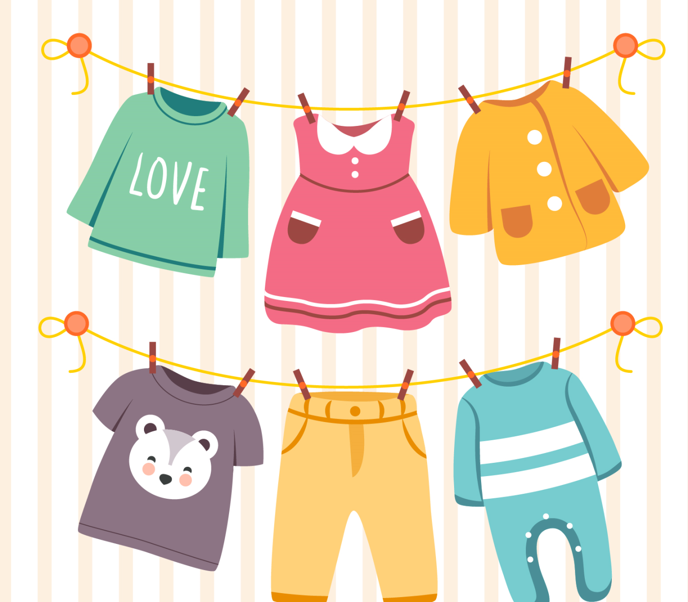 ![Детские вещи на веревке]()