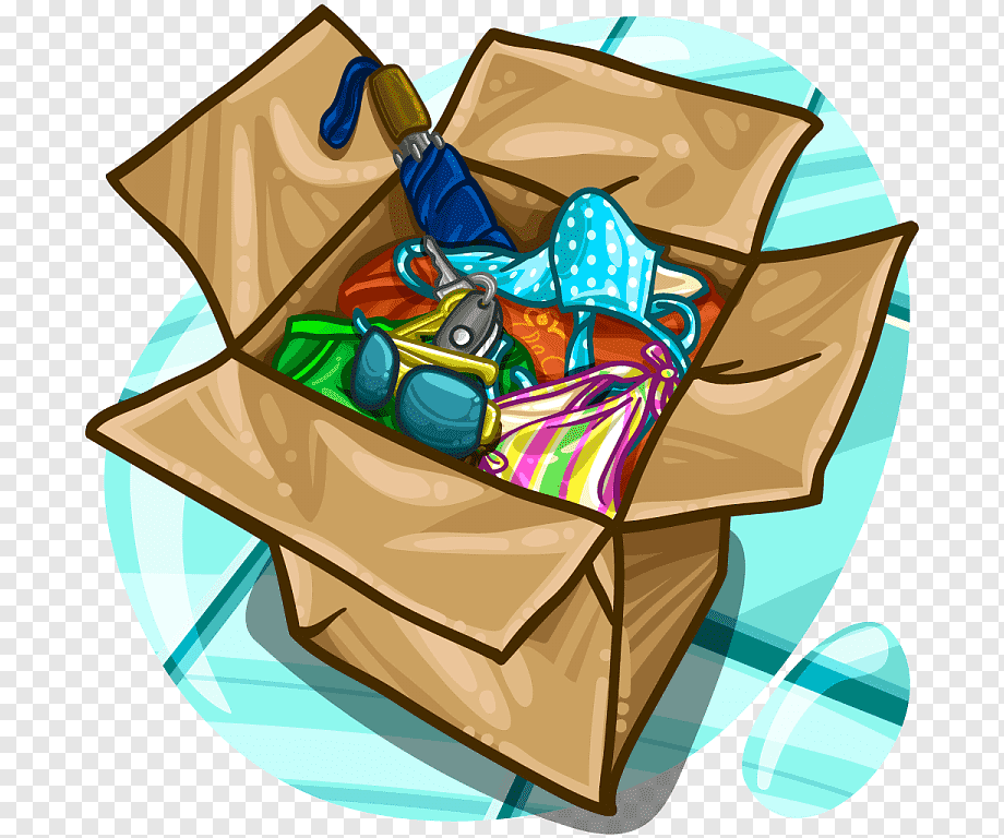 ![Коробка с вещами на прозрачном фоне]()