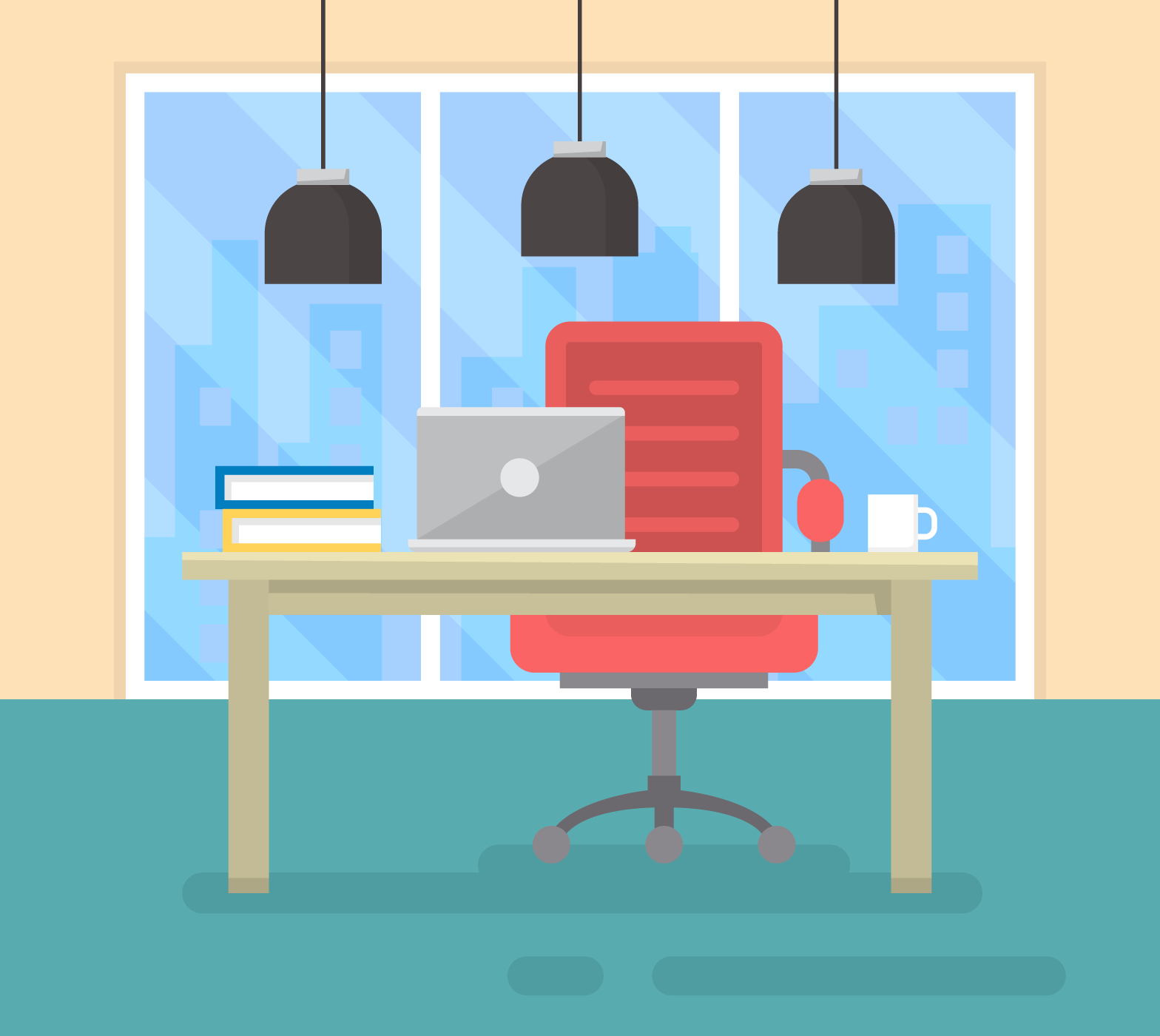 ![Офисный стол иллюстрация]()