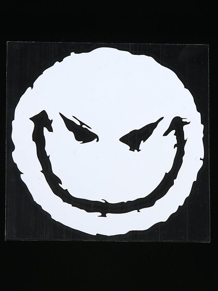 Термоаппликация злой Смайл бело-черный 6 см на 6 см