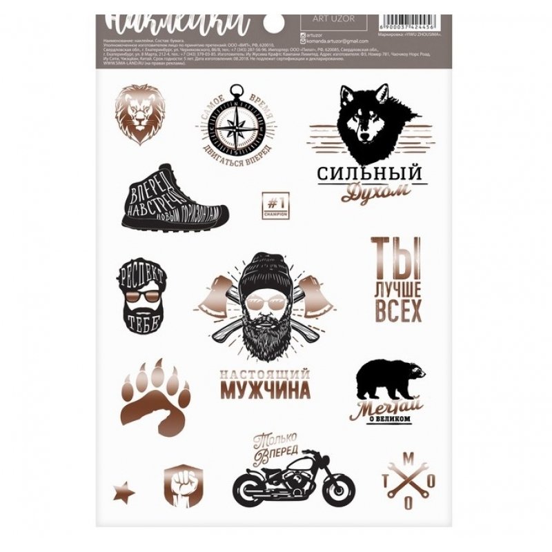 Ищете стильные и выразительные аксессуары для мужчин? Тогда обратите внимание на нашу коллекцию мужских наклеек! Мы предлагаем широкий ассортимент уникальных дизайнов, которые позволят вам выделиться из толпы. Наши наклейки изготовлены из высококачественных материалов, благодаря чему они прочны и долговечны. Каждая наклейка имеет яркую и контрастную графику, которая привлечет внимание окружающих. Выбирайте себе наклейку, которая отражает вашу индивидуальность и стиль, и добавьте еще больше характера вашему образу. Не упустите возможность придать своим вещам настоящий мужской шарм с нашими эффектными наклейками!