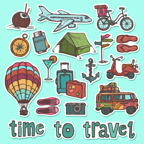 ![Наклейки путешествие вектор]()