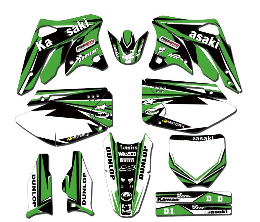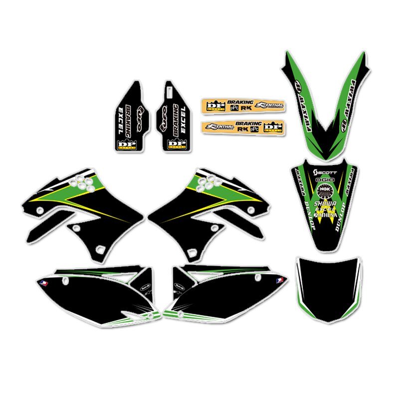 ![Наклейки на кроссовый мотоцикл Кавасаки]()