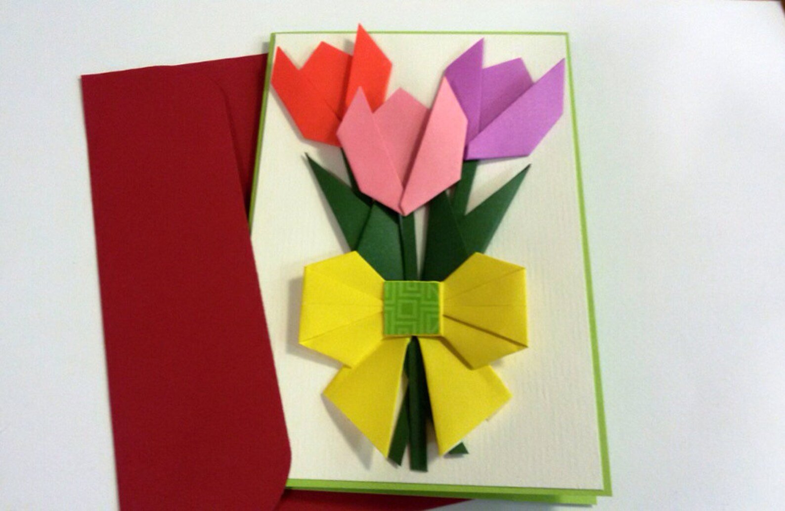 Открытка с тюльпанами из бумаги