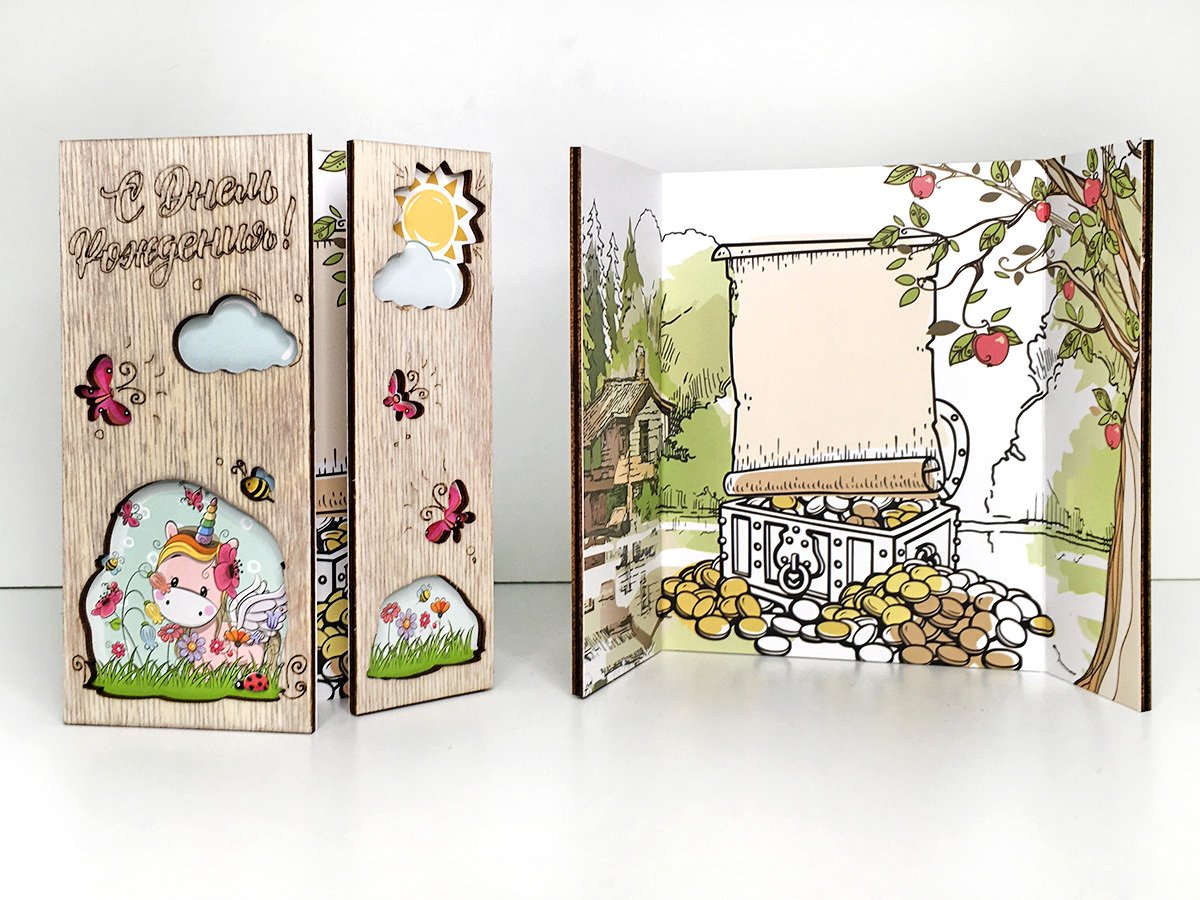 Деревянная открытка для денег