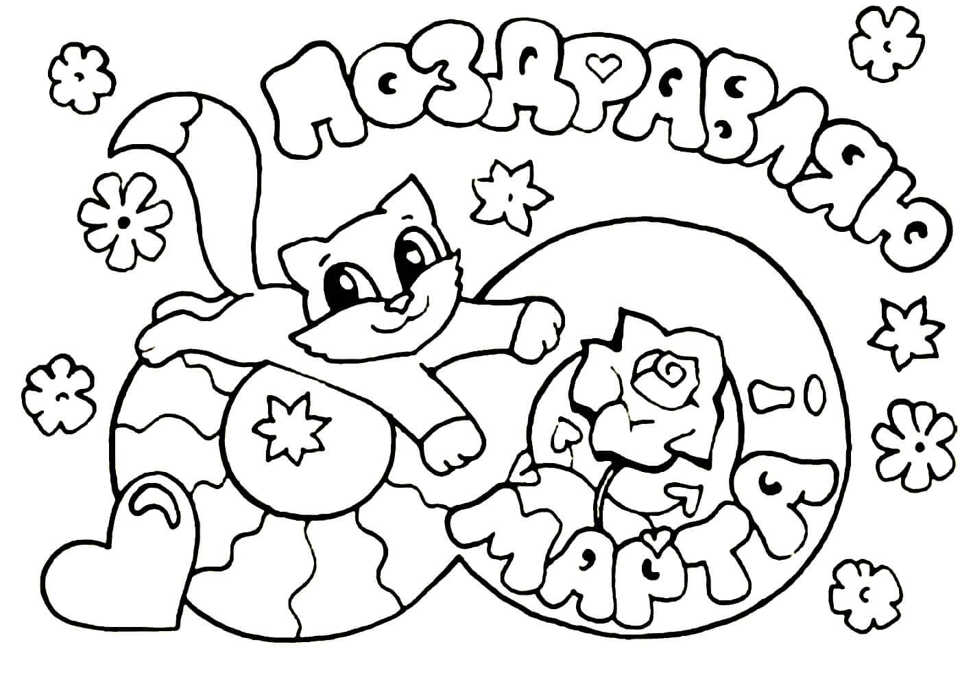 Поздравление с 8 марта раскраска