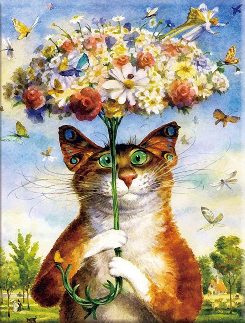 Котенок с цветами