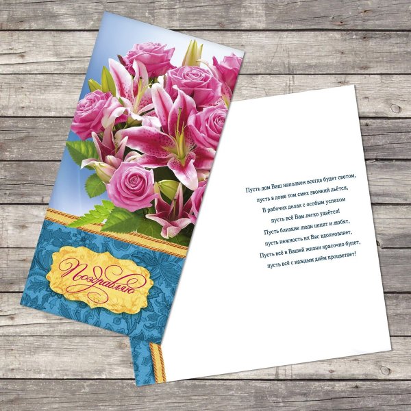 Открытка евро «поздравляю», лилии, 10 ? 21 См