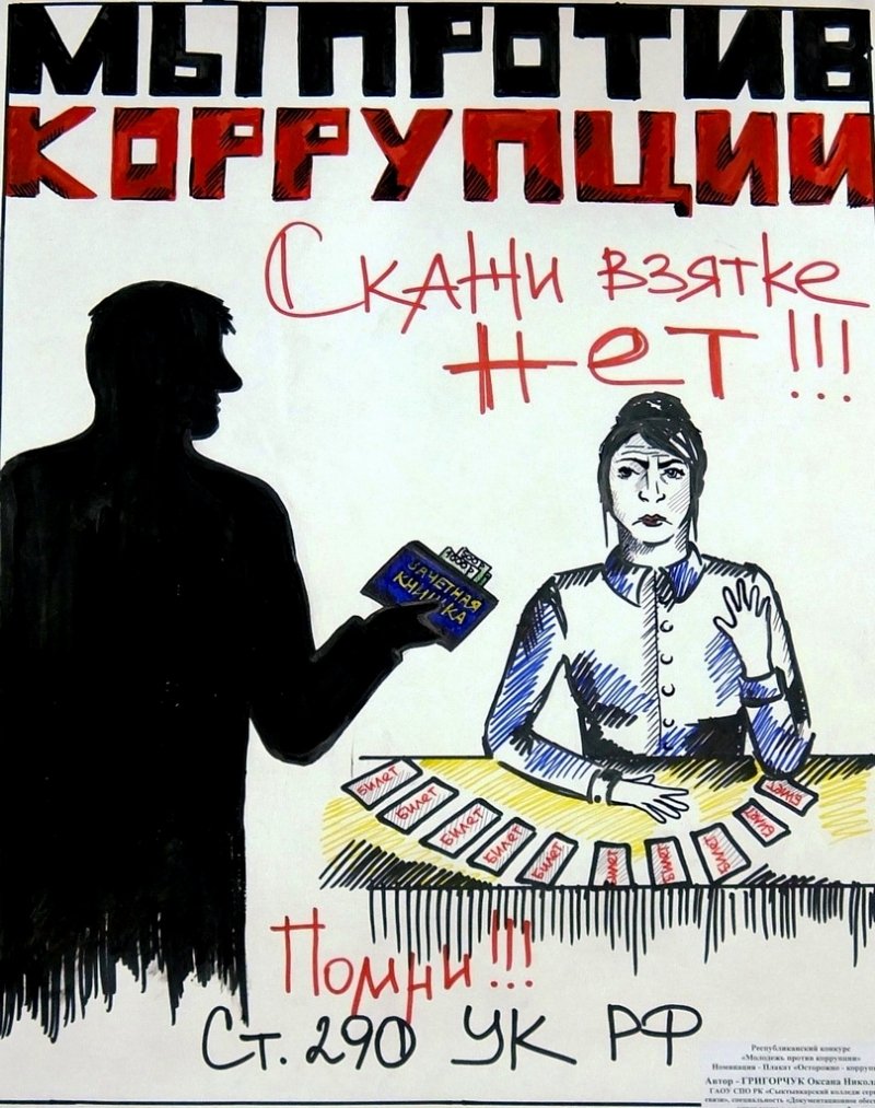 Антикоррупционный плакат – эффективное средство пропаганды нулевой терпимости к коррупции. Сегодня она является одной из главных проблем общества, поэтому создание и размещение антикоррупционных плакатов имеет важное значение для информирования и просвещения широкой аудитории. В таком плакате используются яркие цвета, запоминающиеся изображения и краткие, лаконичные слоганы, чтобы привлечь внимание людей и передать им ключевые сообщения о неприемлемости коррупции. Такой подход помогает повысить осведомленность граждан о вреде коррупции и способствует формированию отрицательного отношения к этому явлению. Размещение антикоррупционных плакатов на видных местах в общественных местах, учебных заведениях, офисах и других местах, где проходит большое количество людей, позволяет достичь максимального охвата аудитории и создать благоприятную атмосферу для борьбы с коррупцией.