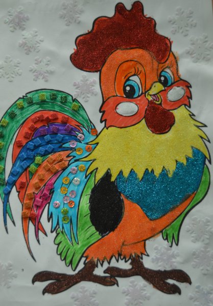 Рисунок петуха в цвете
