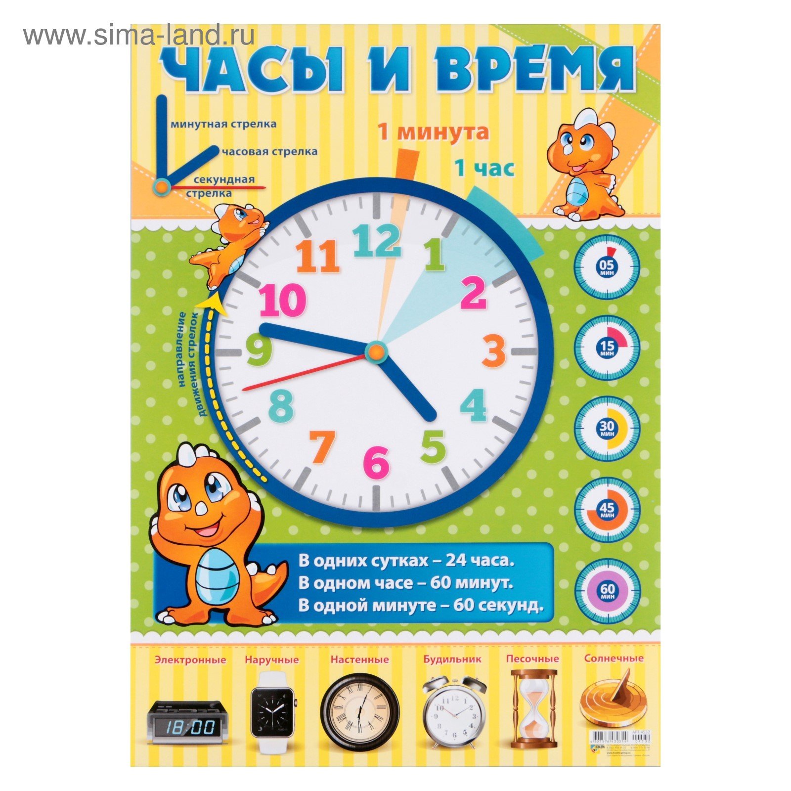Плакат обучающий часы
