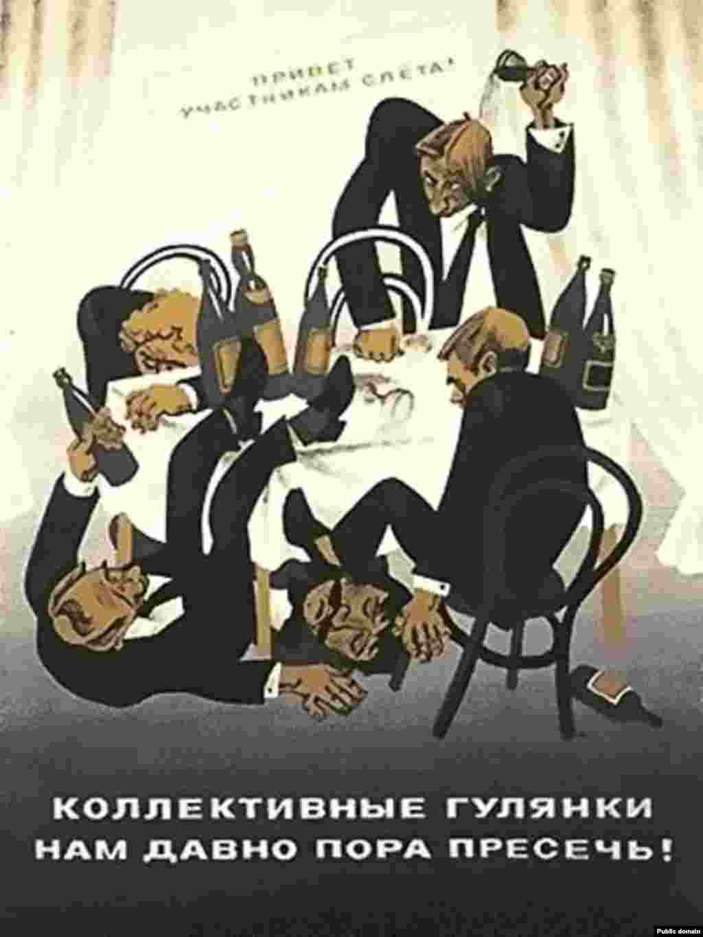 ![Советские плакаты по борьбе с пьянством]()