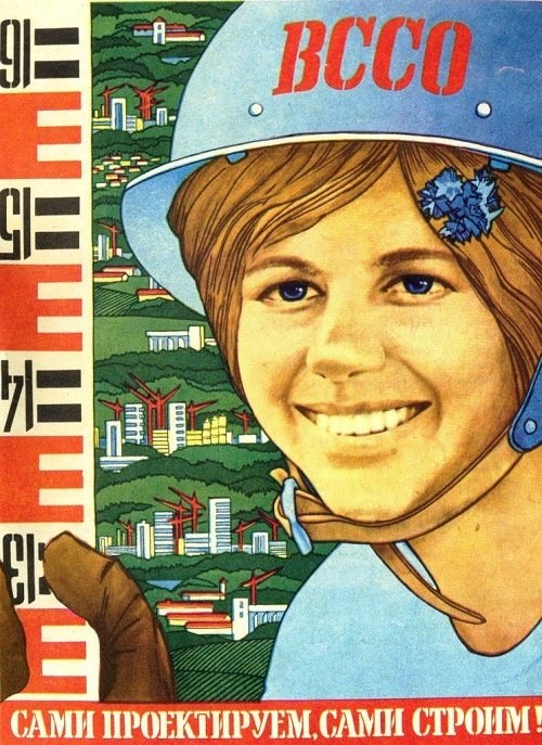 ![Советские плакаты стройка]()