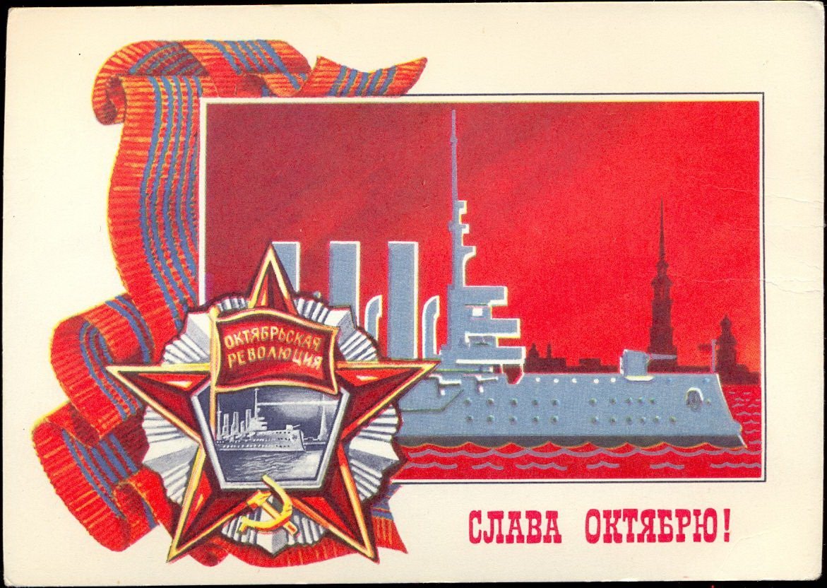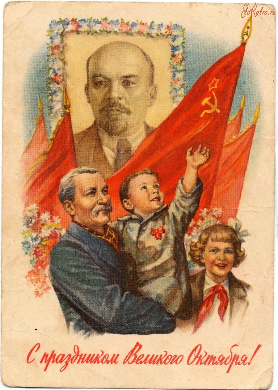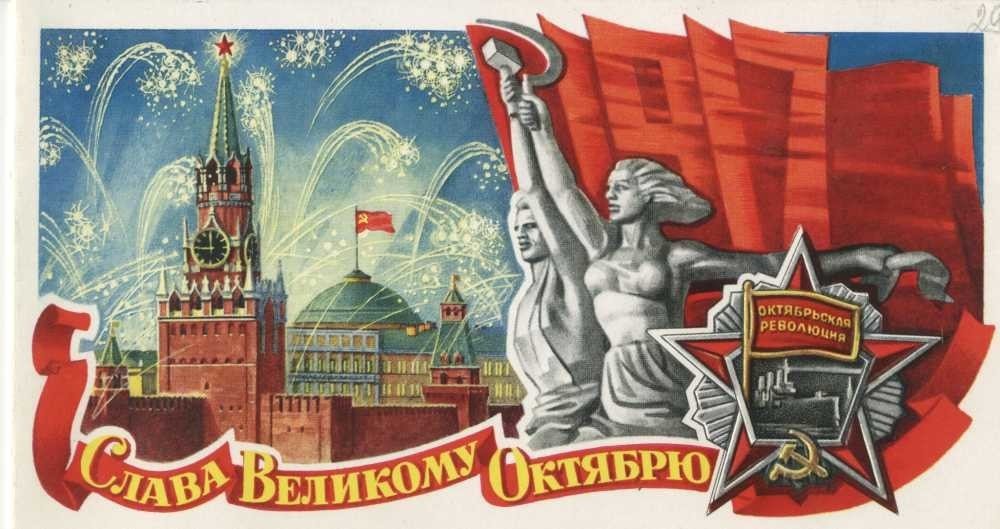 ![Советские открытки Октябрьская революция]()