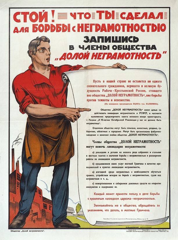 ![Ликвидация безграмотности в СССР В 20 годы]()
