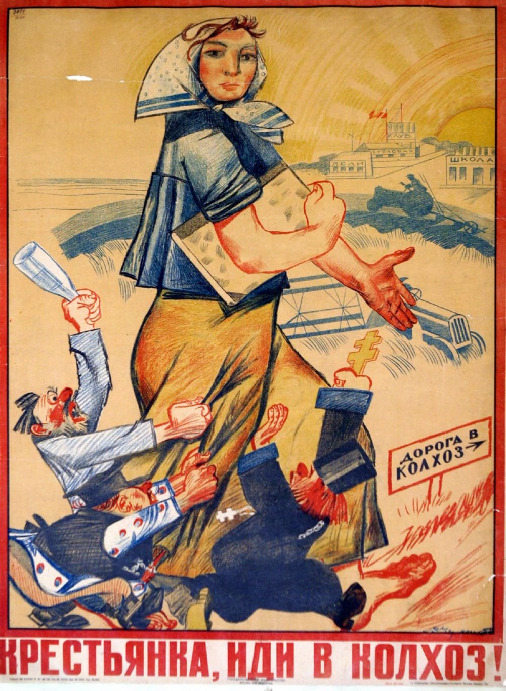 ![Крестьянка КОЛЛЕКТИВИЗИРУЙ деревню иди в ряды красных трактористок]()