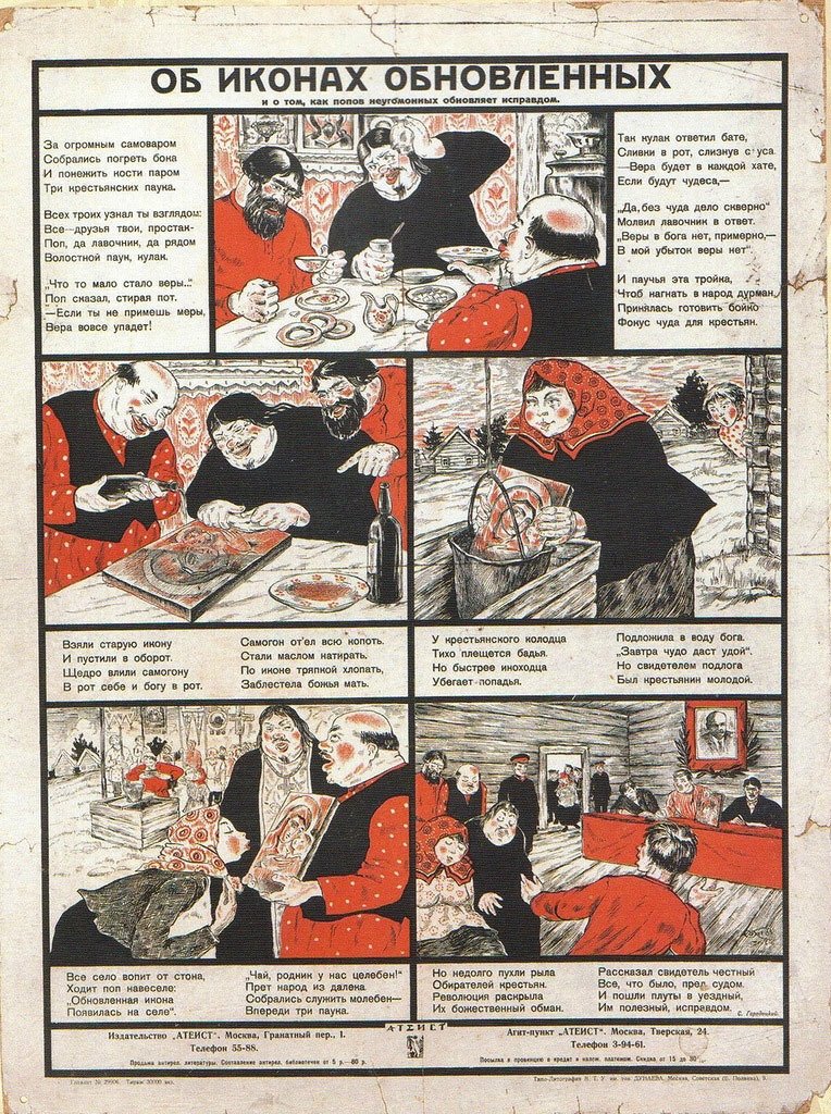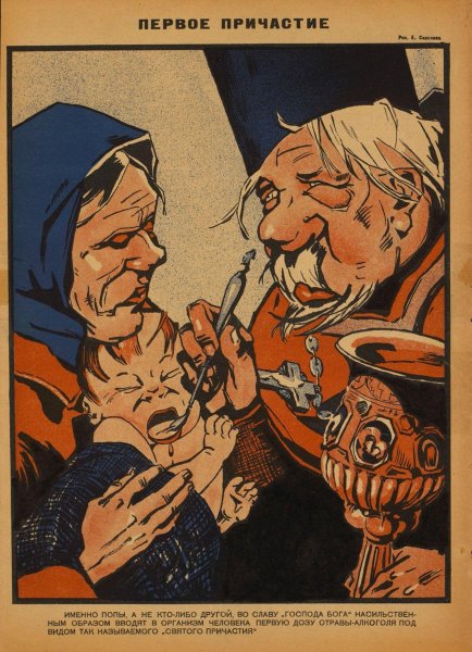 ![Антирелигиозные плакаты СССР 1920]()