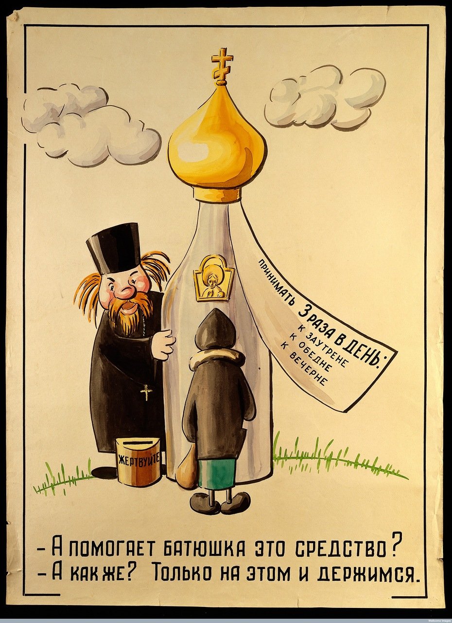 ![Советские антирелигиозные плакаты атеизм в СССР]()