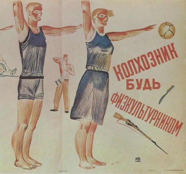 Колхозник будь физкультурником плакат