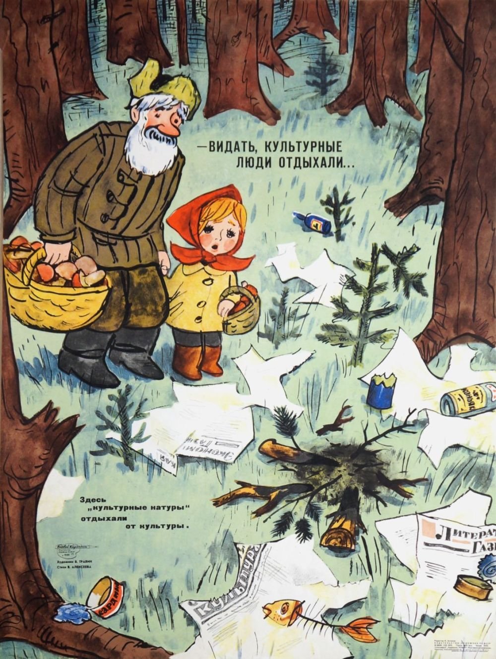 ![Советские плакаты про лес]()