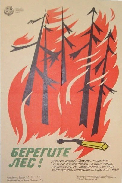 ![Советские плакаты берегите лес]()