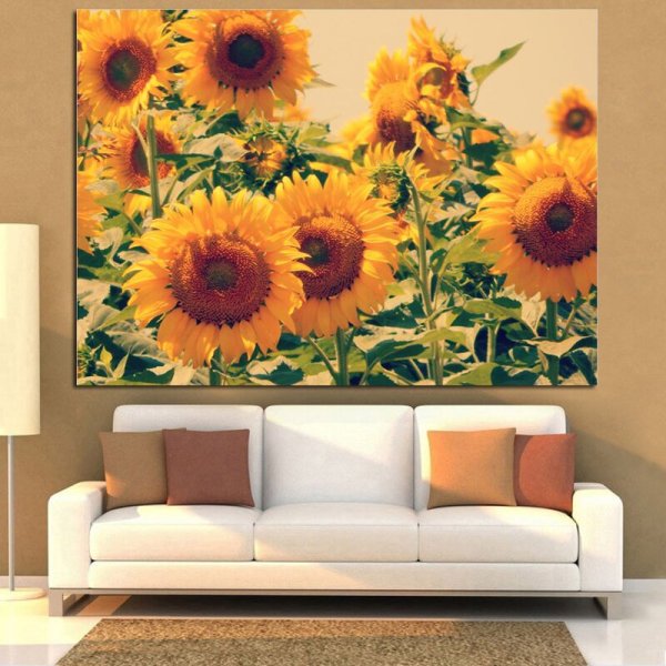 Картины в интерьере гостиной в современном стиле подсолнух