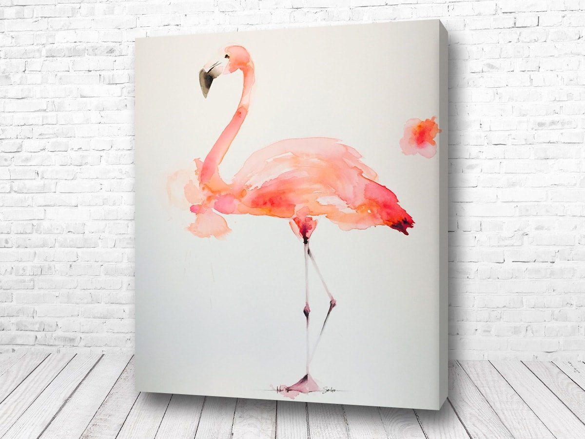 Фламинго акварелью