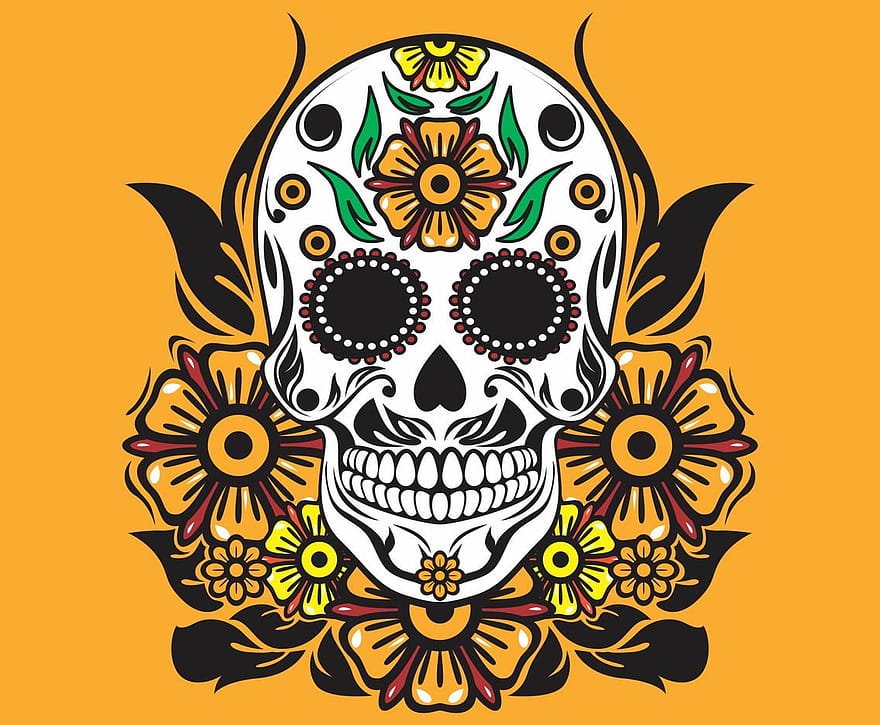 ![Череп цветы мексиканский день мертвых]()