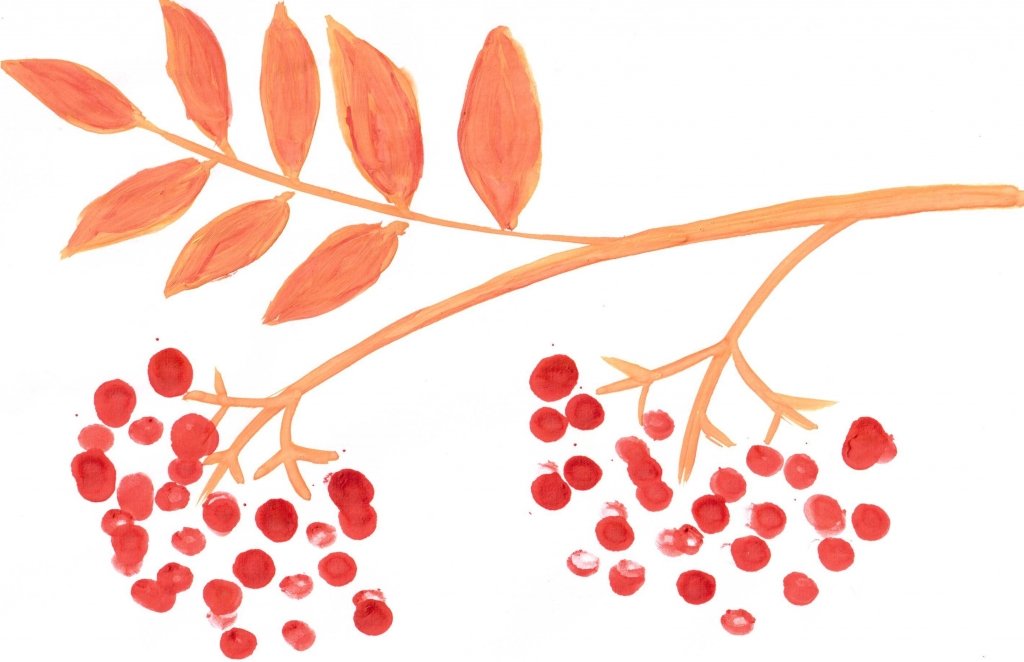 Ветка рябины рисование пальчиками