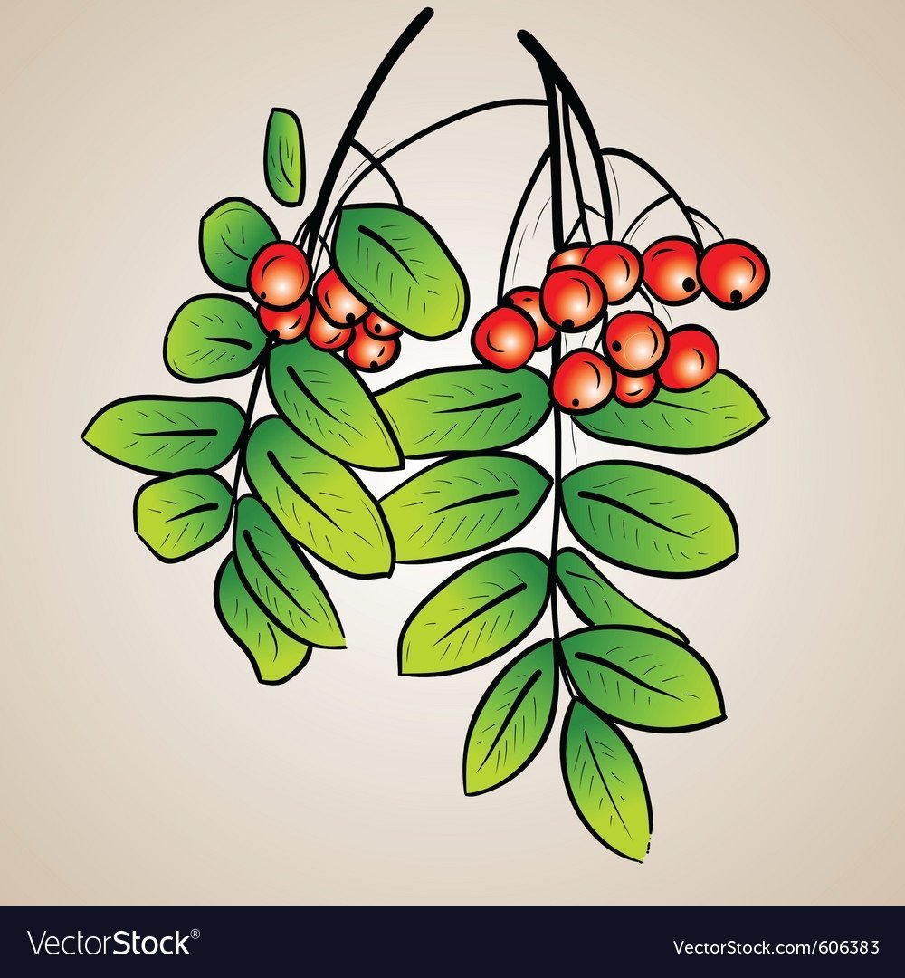 ![Ветка рябины набросок]()