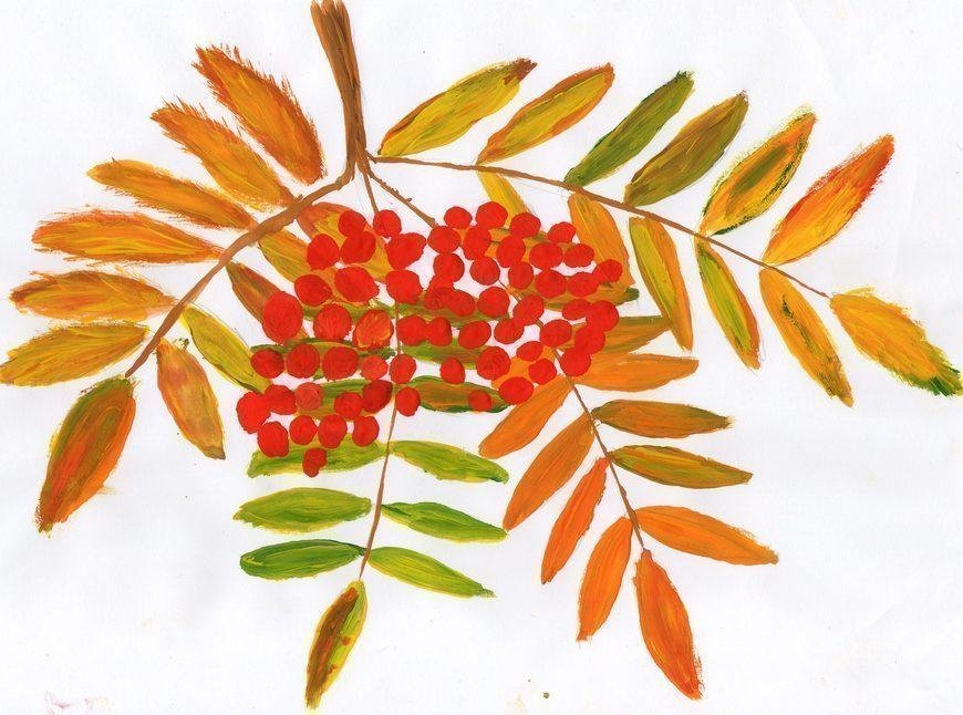 ![Ветка рябины рисование пальчиками]()