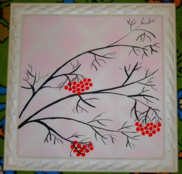![Рябина гуашью]()