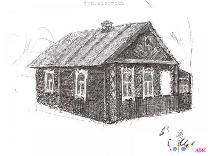 Русская изба рисунок карандашом
