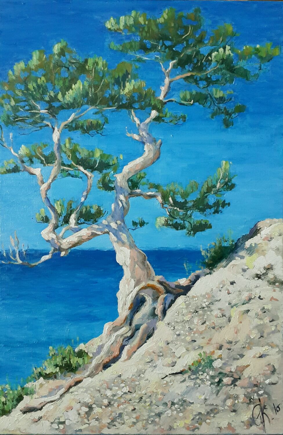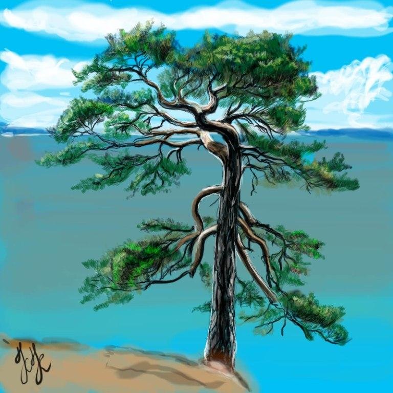 Живопись сосна на скале