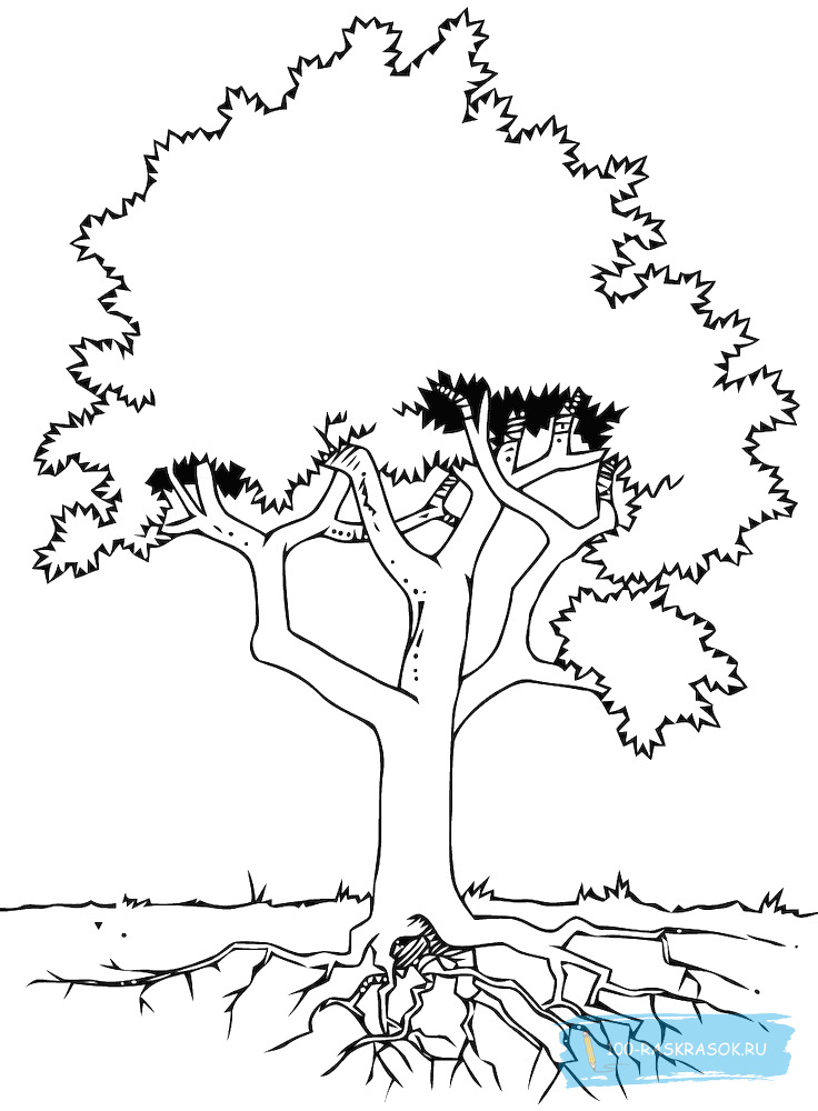 Дерево с корнями раскраска