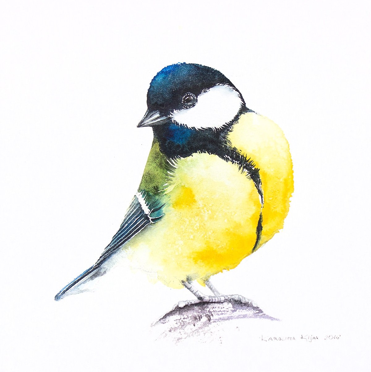 Синица акварелью