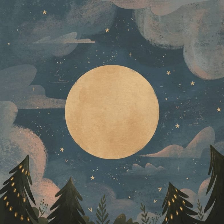 Луна арт акварель
