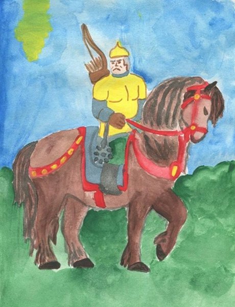 ![Русская Былина «Илья Муромец». Гуашь.]()