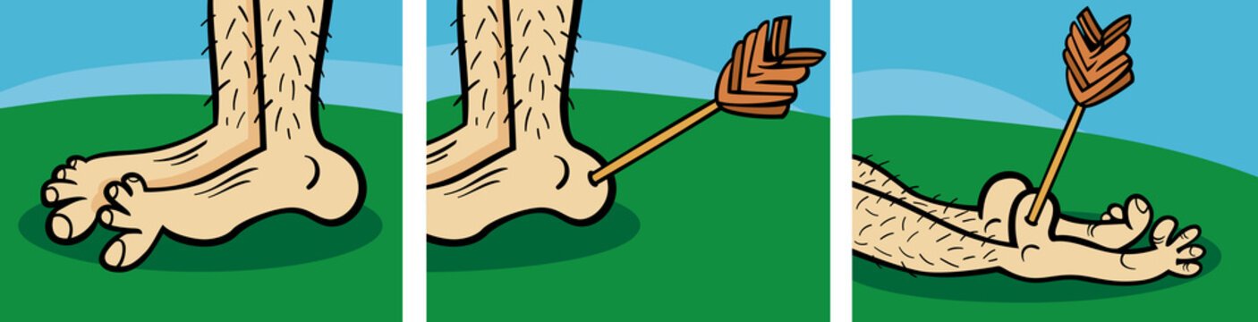 Ахиллесова пята - это известное выражение, которое означает уязвимость или слабое место. В древнегреческой мифологии Ахиллес был бессмертным героем, но его нога оставалась единственной уязвимой точкой. Это стало явным во время Троянской войны, когда стрела, попавшая в пятку Ахиллеса, привела к его гибели. Изображение этой сцены на рисунке подчеркивает важность осторожности и осмотрительности, а также напоминает нам о том, что даже самые сильные и непобедимые люди имеют свои слабости.